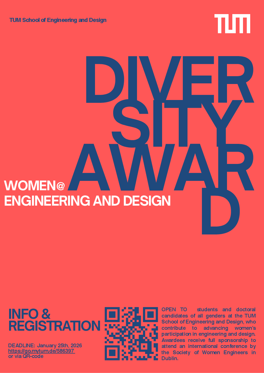 The Women@ED Diversity Awards program serves as both a reward and an incentive for Bachelor and Master students at the TUM School of Engineering and Design and doctoral candidates of all genders engaged in promoting STEM careers for women.