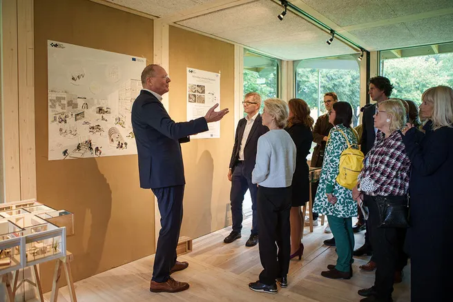 Von der Leyens Besuch fand einen Tag nach ihrer Teilnahme an der DLD Nature Konferenz statt, bei der das Projekt “Creating NEBourhoods Together” bereits in einem Workshop zum Thema “Reconnecting with nature: Wie das Neue Europäische Bauhaus Lösungen für natur- und klimaangepasste Räume umsetzt” vorgestellt wurde. Dort präsentierten u.a. die ED-Mitglieder Prof. Werner Lang, Prof. Ferdinand Ludwig, Marlene Stechl und Sebastian Koth Ideen und Forschungen zu klimagerechter Stadtentwicklung. Die Gäste erhielten Einblicke in Projekte, die erfolgreich die Vision des Green Deals umsetzen.