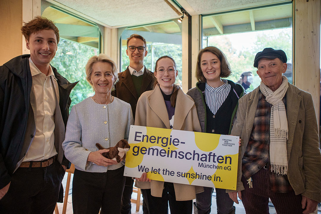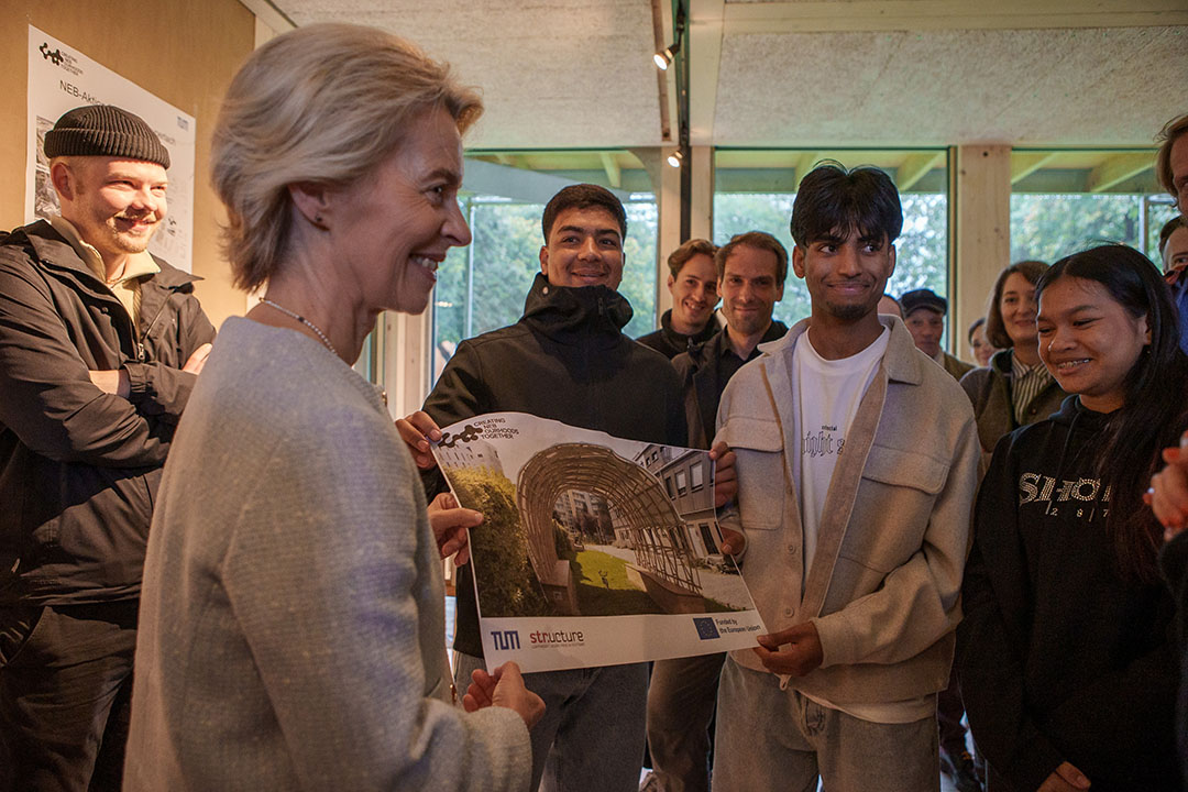 Beim darauffolgenden Besuch in Neuperlach konnte sich Ursula von der Leyen ein Bild vor Ort machen. Begrüßt wurde die Kommissionspräsidentin von der 3. Bürgermeistern der Landeshauptstadt München, Verena Dietl. Eine kurze Einführung in "Creating NEBourhoods Together" übernahmen die drei Foundingpartner Prof. Dr. (Univ. Florenz) Elisabeth Merk, Stadtbaurätin der Landeshauptstadt München und Leiterin des Referats für Stadtplanung und Bauordnung, Prof. Dr. Helmut Schönenberger, Geschäftsführer (CEO) der UnternehmerTUM GmbH und Prof. Werner Lang vom Lehrstuhl für Energieeffizientes und Nachhaltiges Planen und Bauen der TUM.