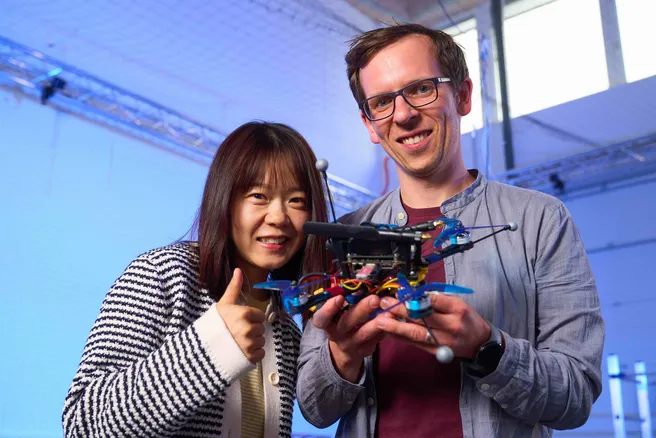 Das Forschungsgebiet von Prof. Markus Ryll ist, wie seine Interessen, interdisziplinär: Die Mitarbeitenden der Professur bringen Wissen aus vielen Bereichen mit, vom Drohnenbau bis zur Programmierung. Eine Leidenschaft für Robotik und Informatik ist ebenso willkommen wie für Mechanik oder Physik.