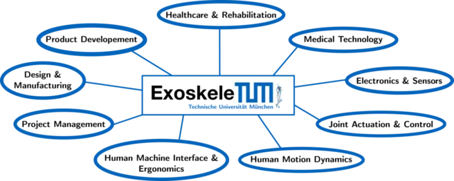In this students seminar you will develop the first prototype of an exoskeleton in an interdisciplinary team. To master this complex task, four chairs at TUM School of Engineering and Design have joined forces: the Chair of Applied Mechanics, the Chair of Ergonomics, the Chair of Carbon Composites and the Chair for Product Development and Lightweight Design. In regular project meetings the groups of the chairs synchronize and learn important skills regarding project organization and teamwork.