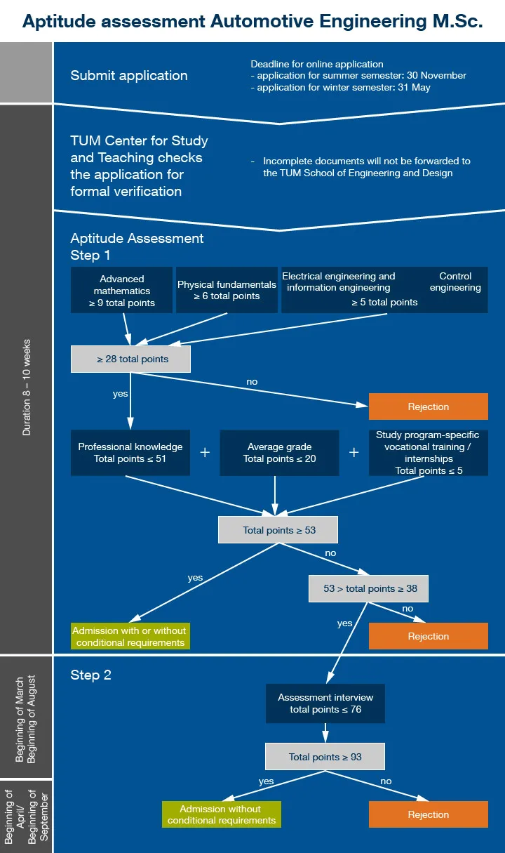 Minimum requirements to apply for a Master's program at TUM are a recognized undergraduate degree (e.g. a Bachelor’s) and the successful completion of the aptitude assessment procedure to evaluate your individual talents and motivation for study.