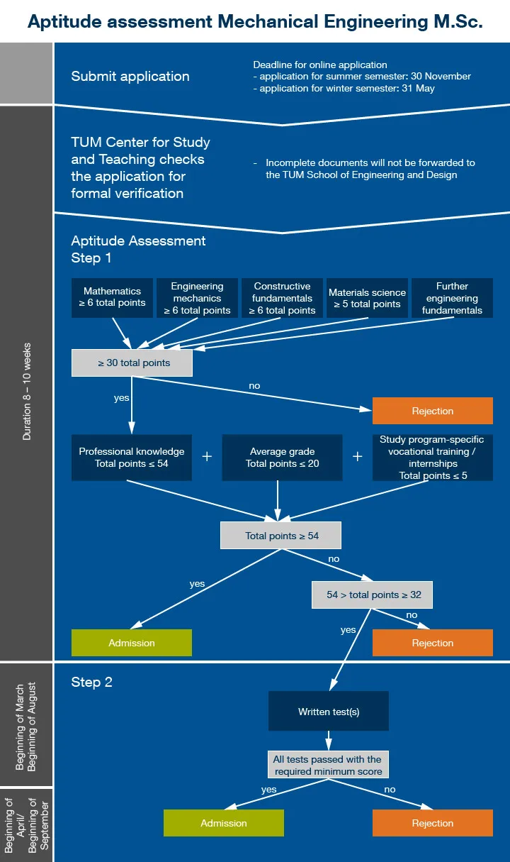 Minimum requirements to apply for a Master's program at TUM are a recognized undergraduate degree (e.g. a Bachelor’s) and the successful completion of the aptitude assessment procedure to evaluate your individual talents and motivation for study.