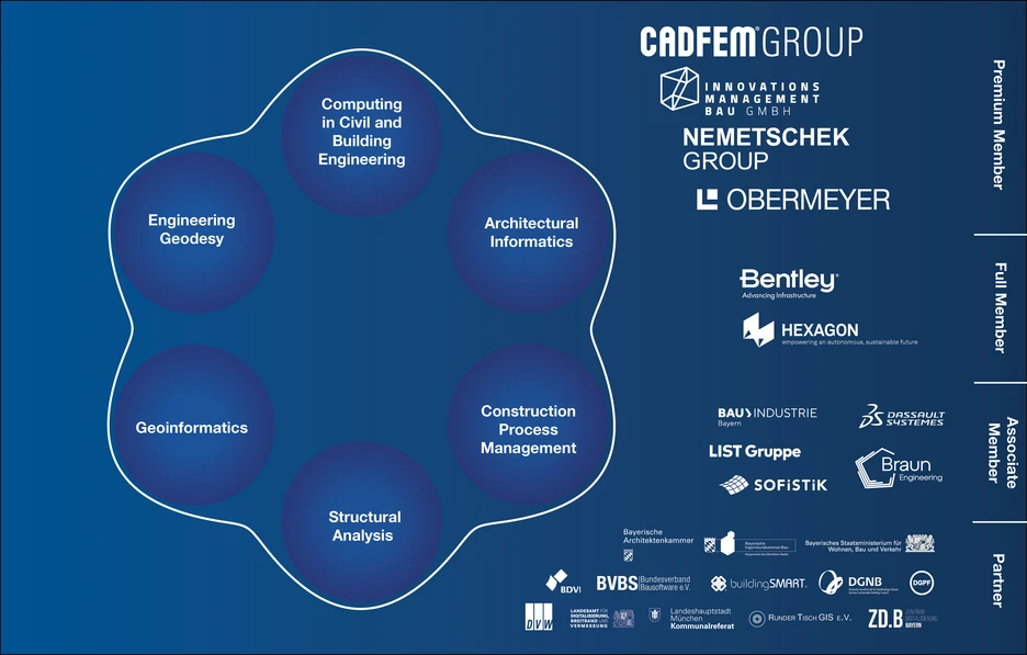 Das Zentrum bietet eine Plattform für eine enge Zusammenarbeit mit Interessengruppen der internationalen AEC- und GIS-Branche. Zu diesem Zweck bietet das Zentrum ausgewählten Unternehmen die Möglichkeit, Mitglied des Zentrums zu werden. Die Mitglieder beeinflussen die Forschungsprioritäten des Zentrums und erhalten direkten Zugang zu den Forschungsergebnissen. Durch die enge Zusammenarbeit von Wissenschaft und Industrie soll das Zentrum zu einem Think Tank für strategische Entwicklungen in seinem Kompetenzbereich werden. Er wird politische Entscheidungsträger*innen beraten, Entscheidungen der öffentlichen Verwaltungen sowie der relevanten Industrien zur Förderung digitaler Methoden in allen Lebenszyklusphasen von Objekten und Prozessen der gebauten Umwelt unterstützen.